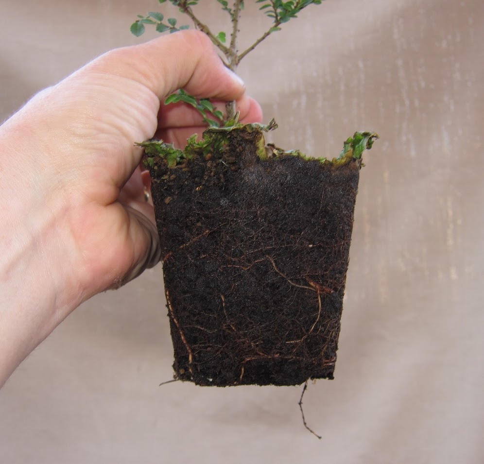 En teoría, al ser olmos chinos, aguantan que se les manipulen las raíces en verano, compensando con poda en la parte área, pero por si las moscas, no quería perder todos los ejemplares, así que uno lo deje de backup, limitándome a pasarlo a un recipiente mayor, con un sustrato no tan drenante, para que no hubiera mucha diferencia con el que traían de origen.